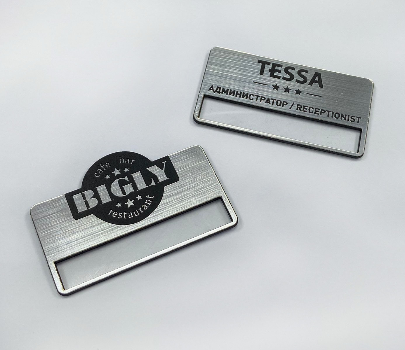 Бейджи из пластика - шлифованное серебро