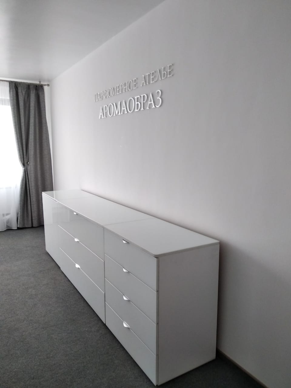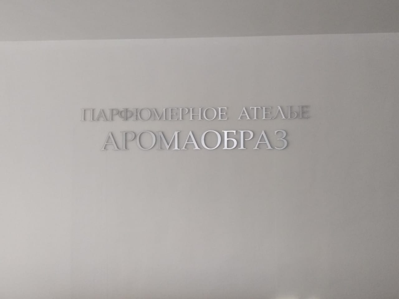 Вывеска изготовлена из зеркального матового оргстекла, на дистанционных держателях (на расстоянии от стены 1,5см.)
