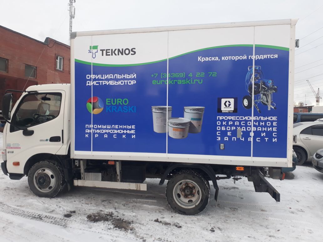 Представители компании "Еврокраски", заказывали в компании "Print-Ural" брендирование своего корпоративного крупногабаритного автомобиля, который занимается перевозкой краски. Таким образом были решены две самые главные проблемы. Во-первых, это качественная и не дорогая передвижная реклама, во-вторых - соблюдение фирменного стиля компании, что крайне важно для любой серьезной организации.