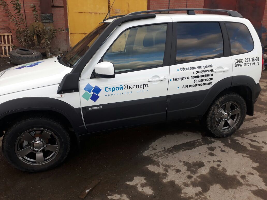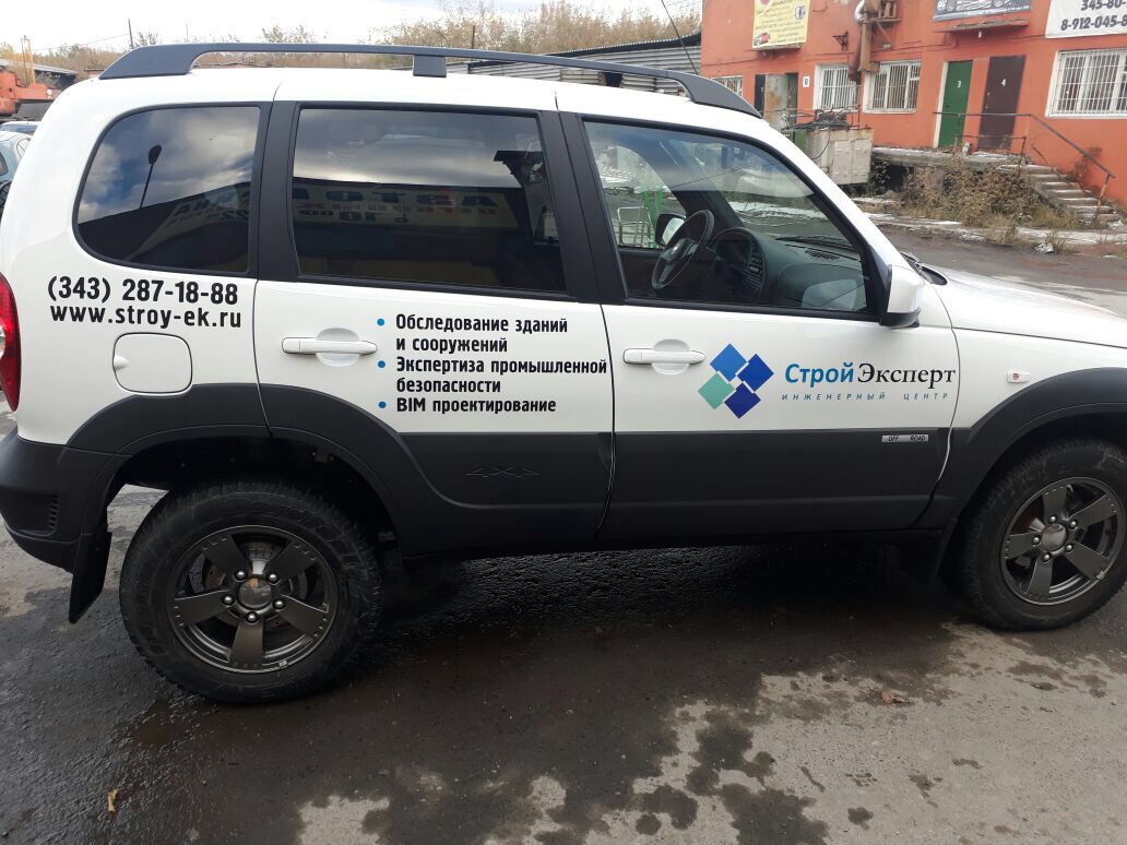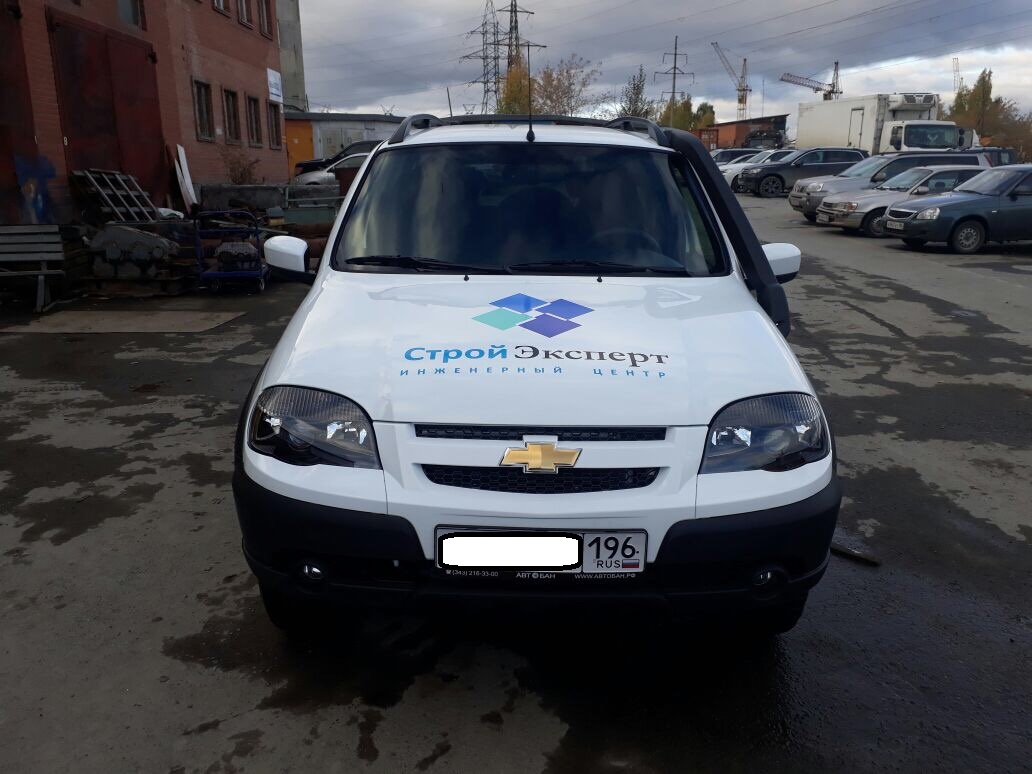 Реклама автомобиля Нива Шевроле компании Строй Эксперт