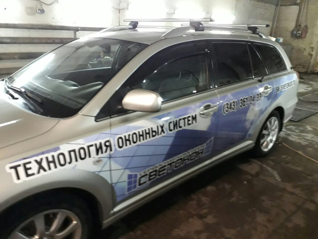 В стоимость брендирования данного автомобиля входило: создание макета, изготовление наклеек, мойка автомобиля и монтаж