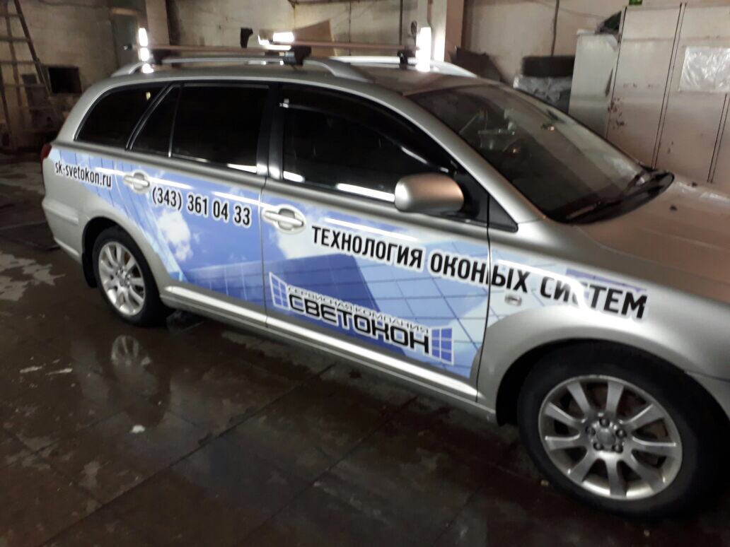 Так, для компании по продаже и установке оконного оборудования "СВЕТОКОН", было выполнено брендирование автомобиля "Тойота" по современному эскизу.