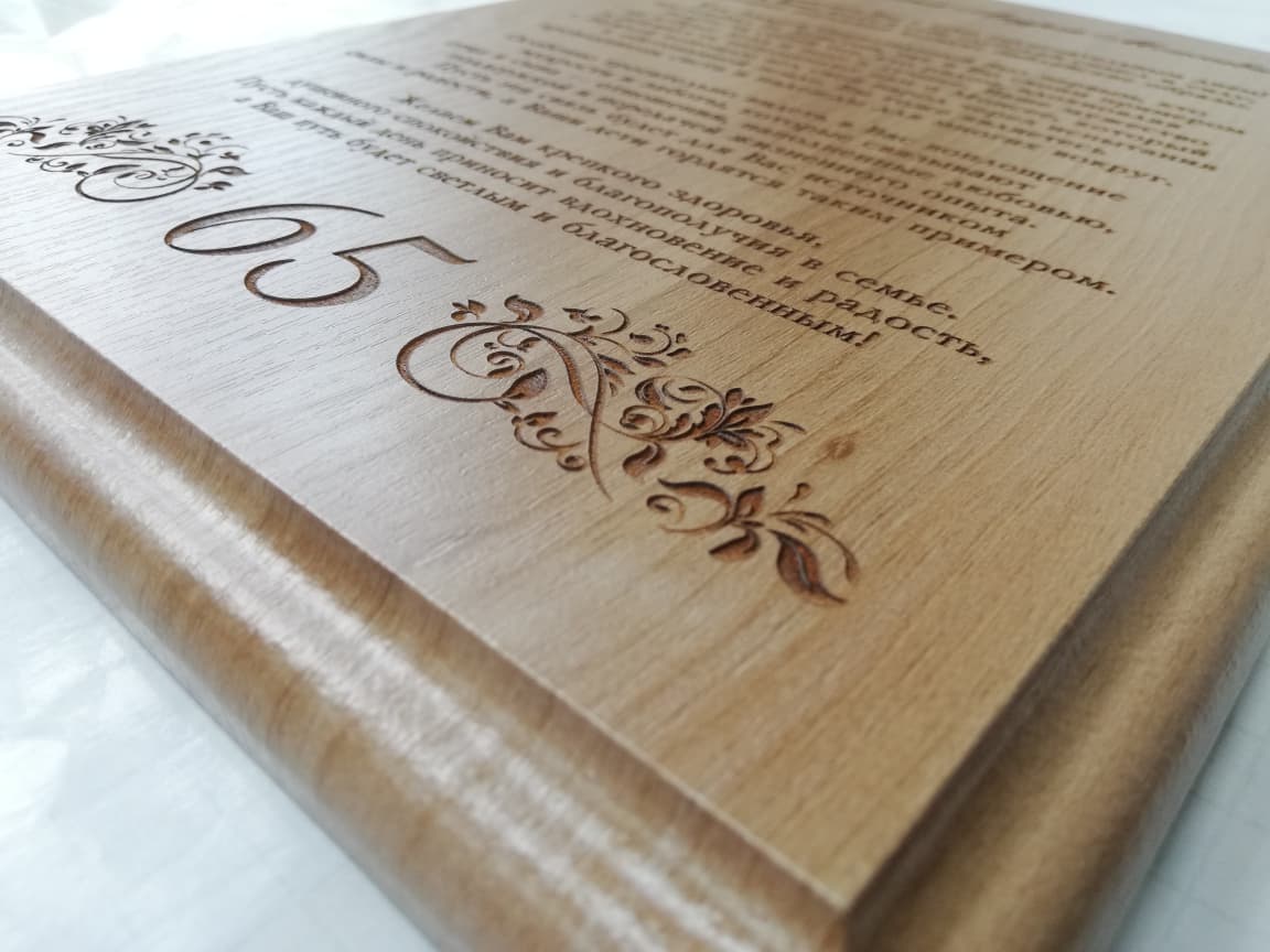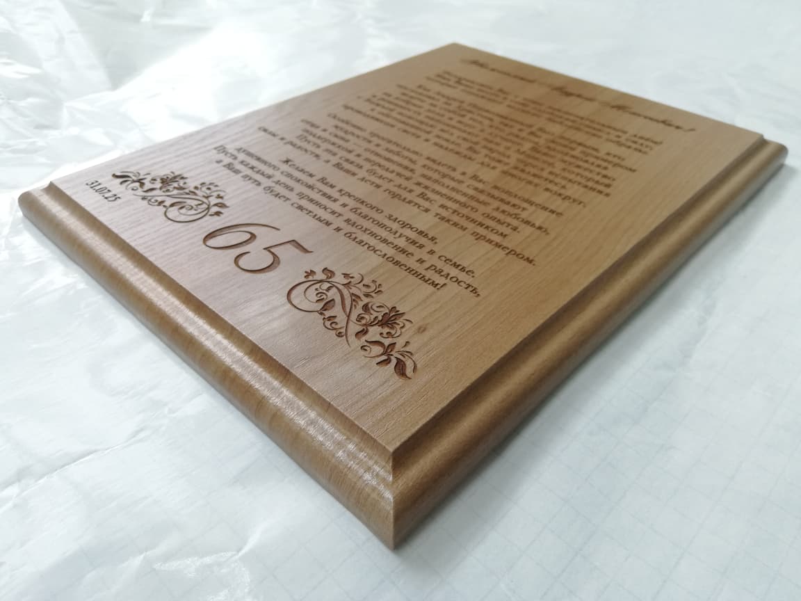 Плакетка представляет собой не большую дощечку и служит отличным вариантом для нанесения на нее какого-либо поздравления, награждения, признания или другой надписи на долгую память.