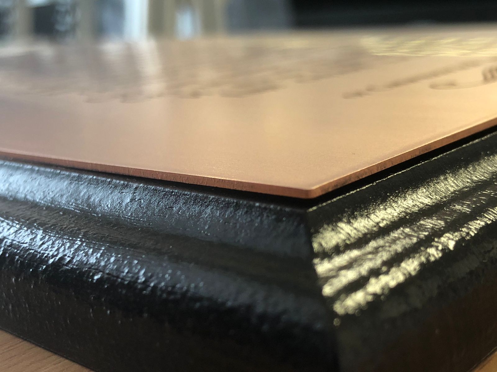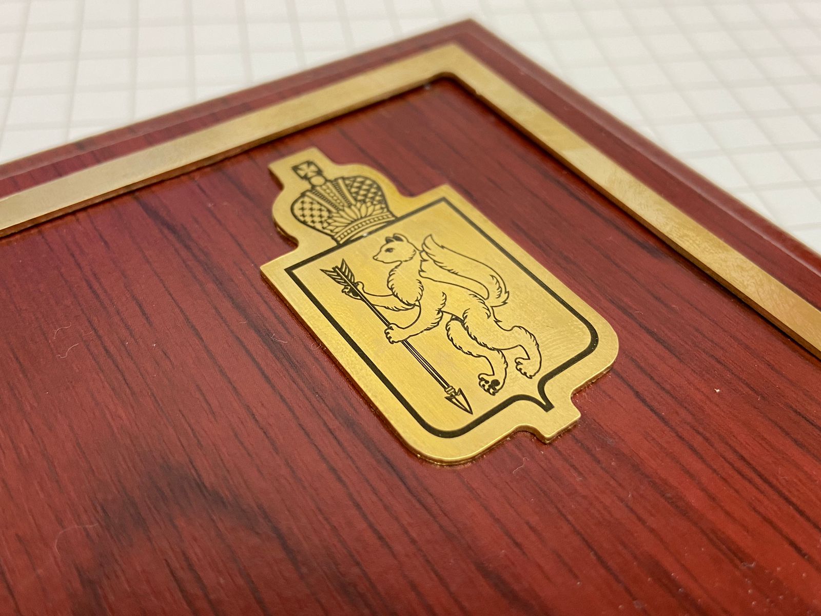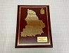 Основа плакетка, поверх нанесен латунный лист 1мм с гравировкой. Верх может быть изготовлен из меди, алюминия, пластика, зеркала. Плакетки есть разных цветов, размер А4 и А5.