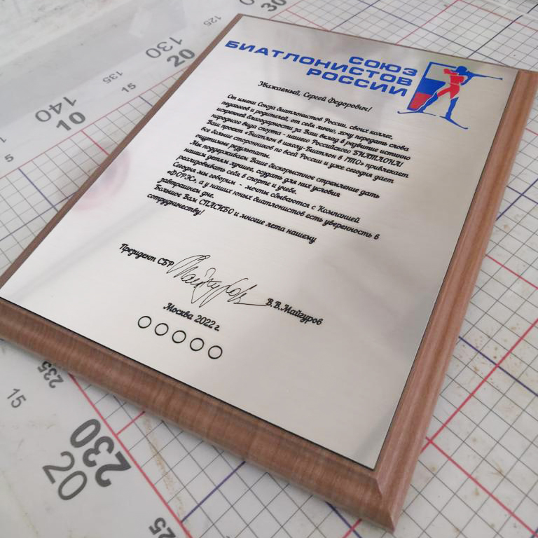 В «Print Ural» можно заказать уникальную табличку на плакетке с вашей индивидуальной гравировкой.
