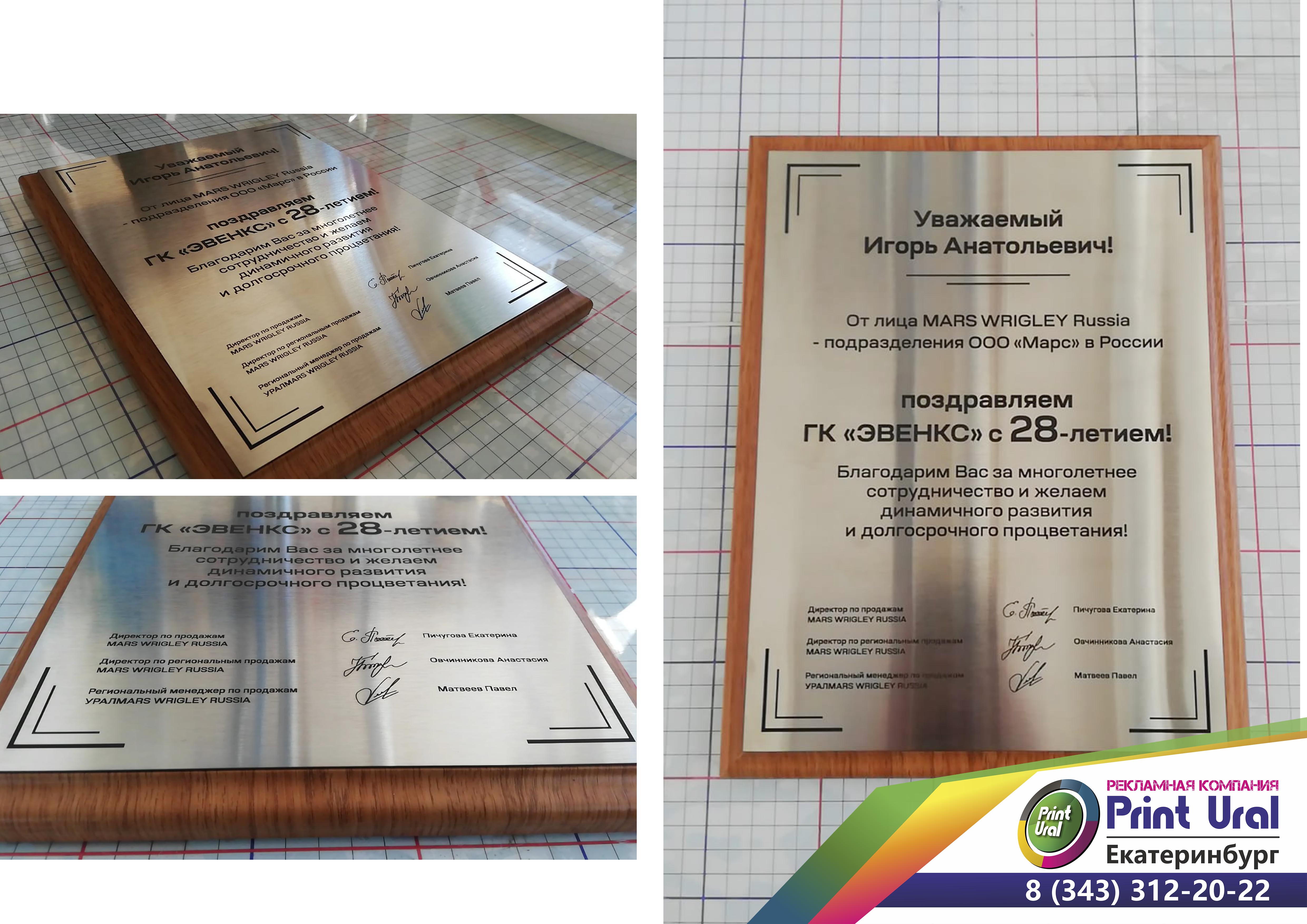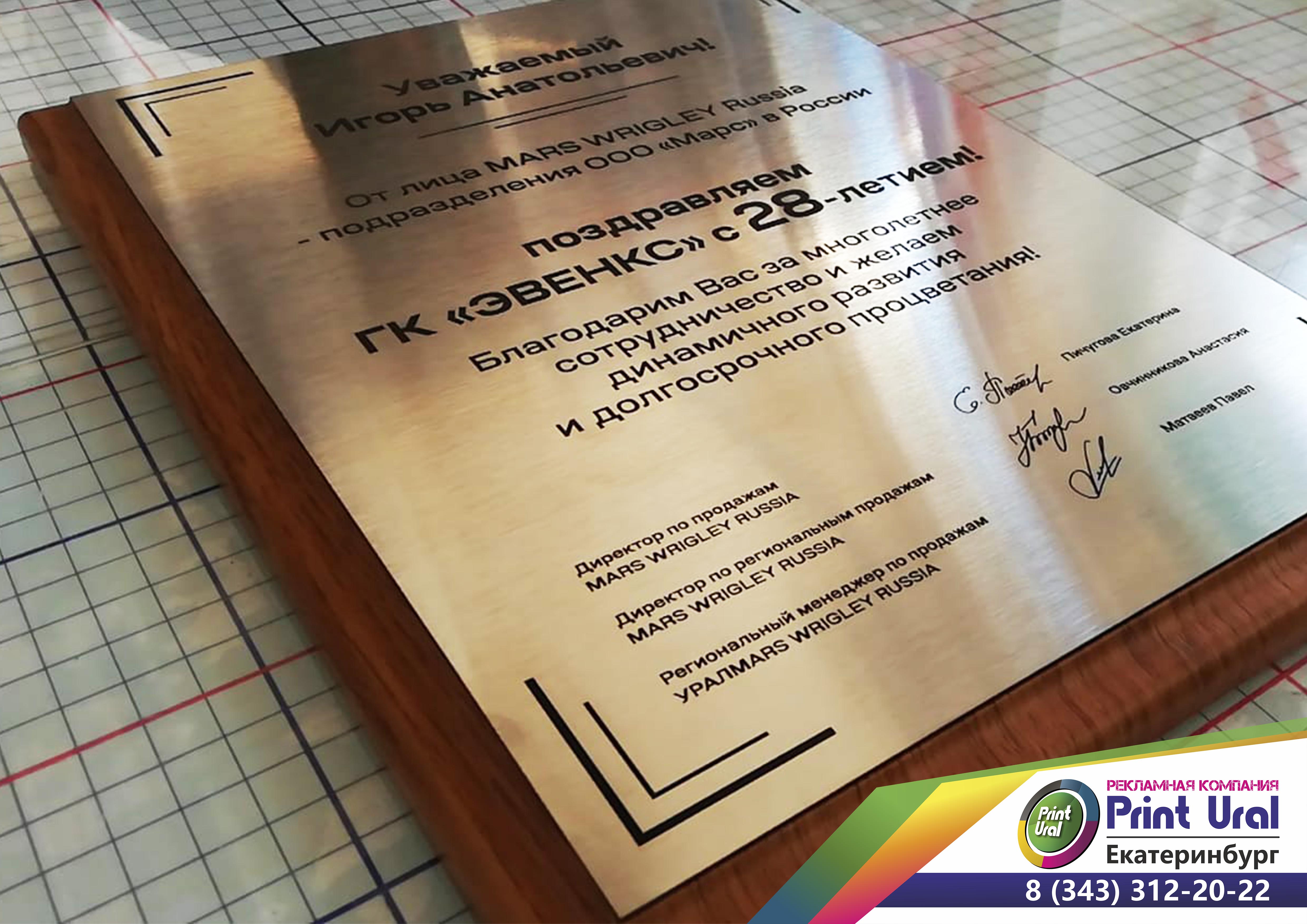 Заказать любую плакетку с гравировкой из любого материала вы сможете в «Print Ural».