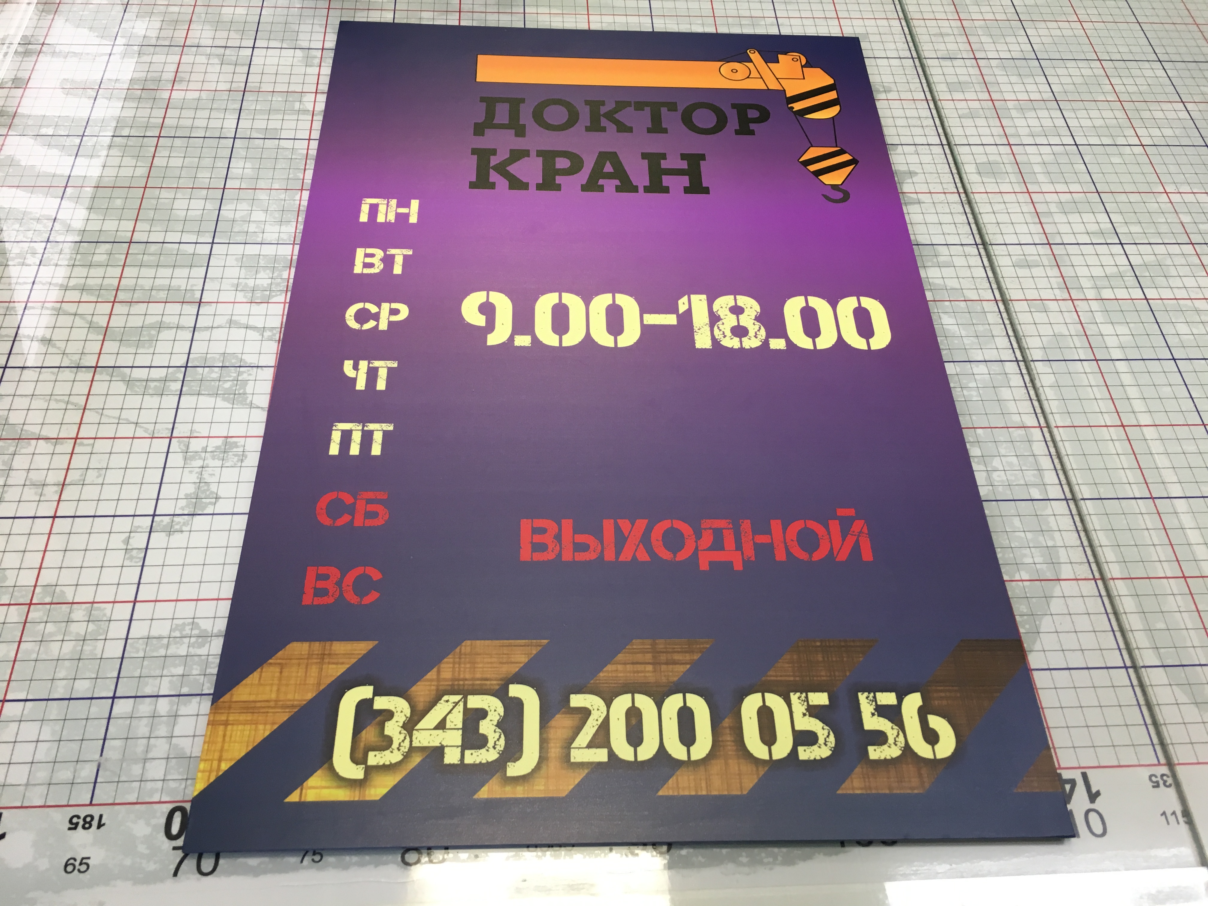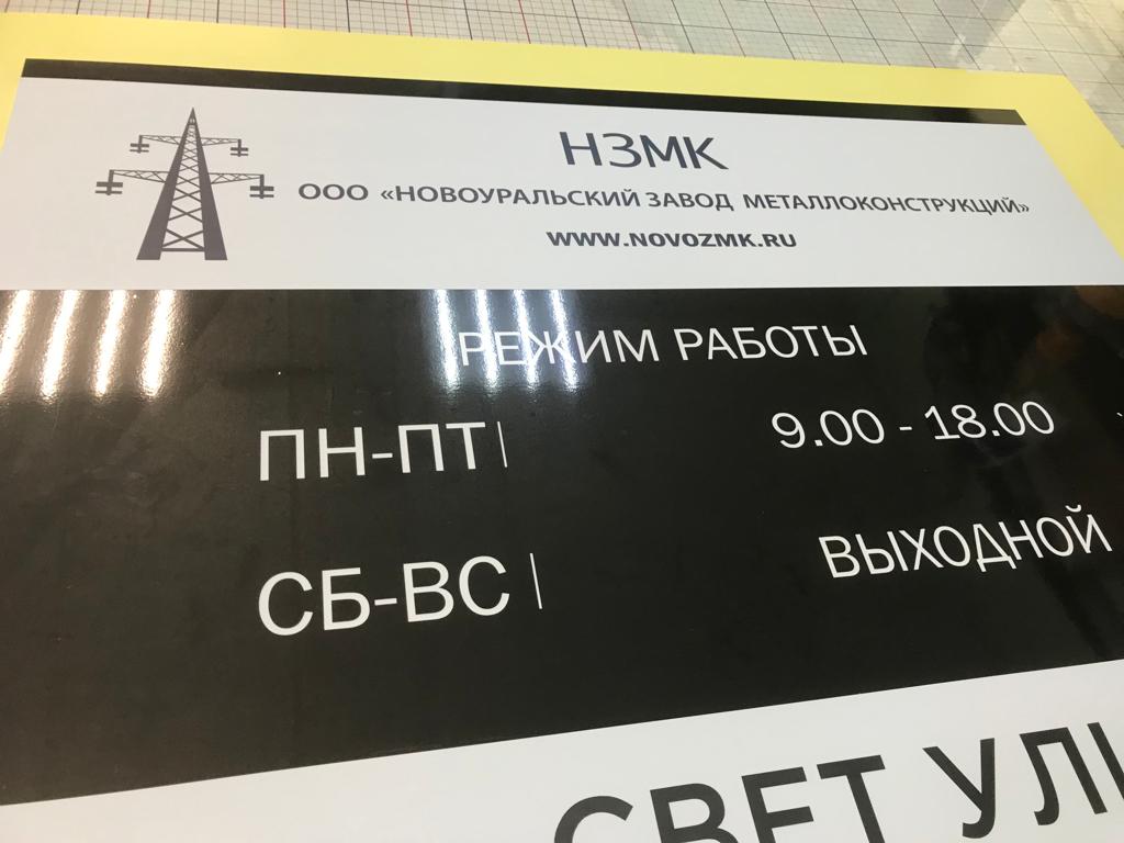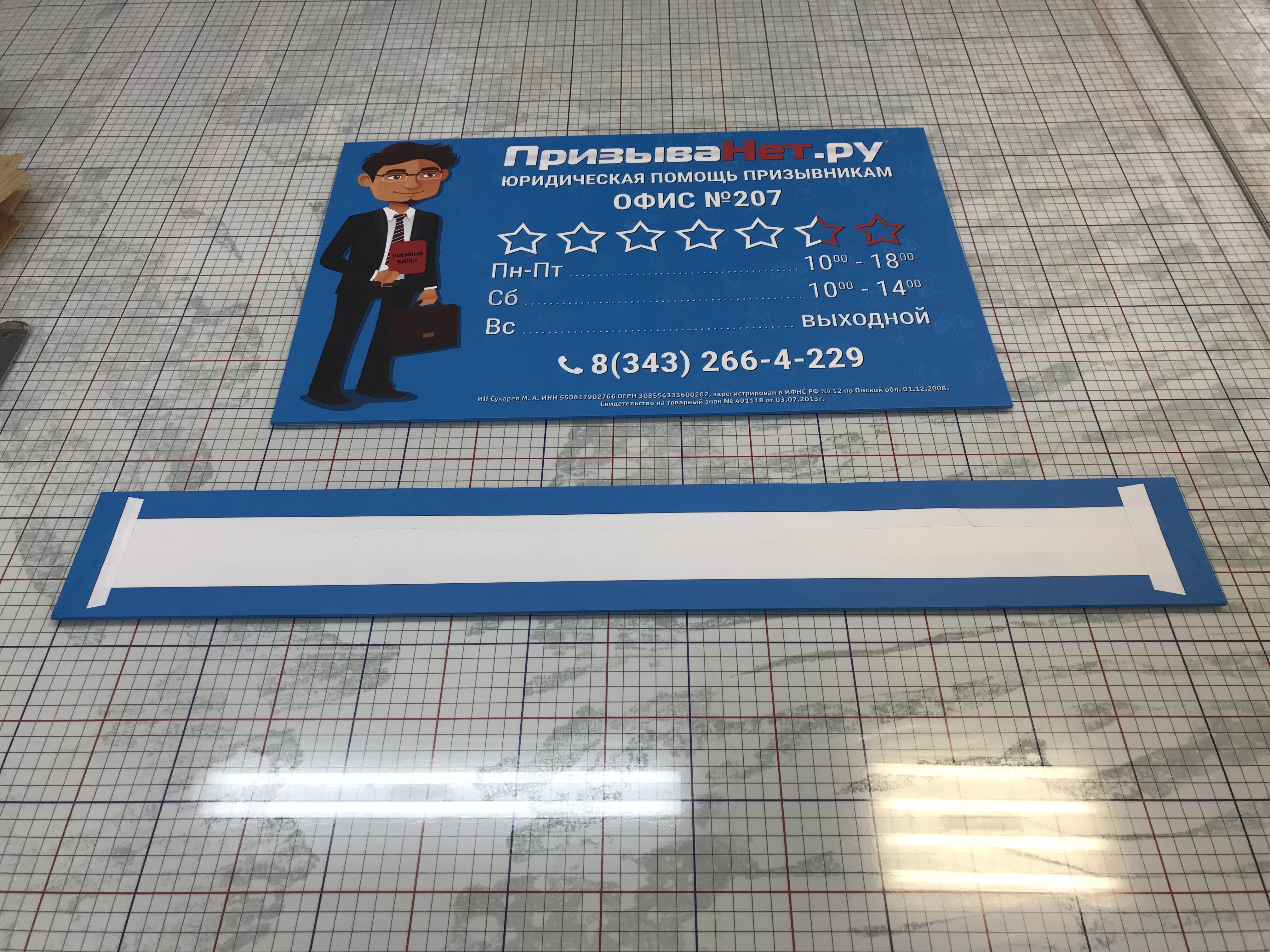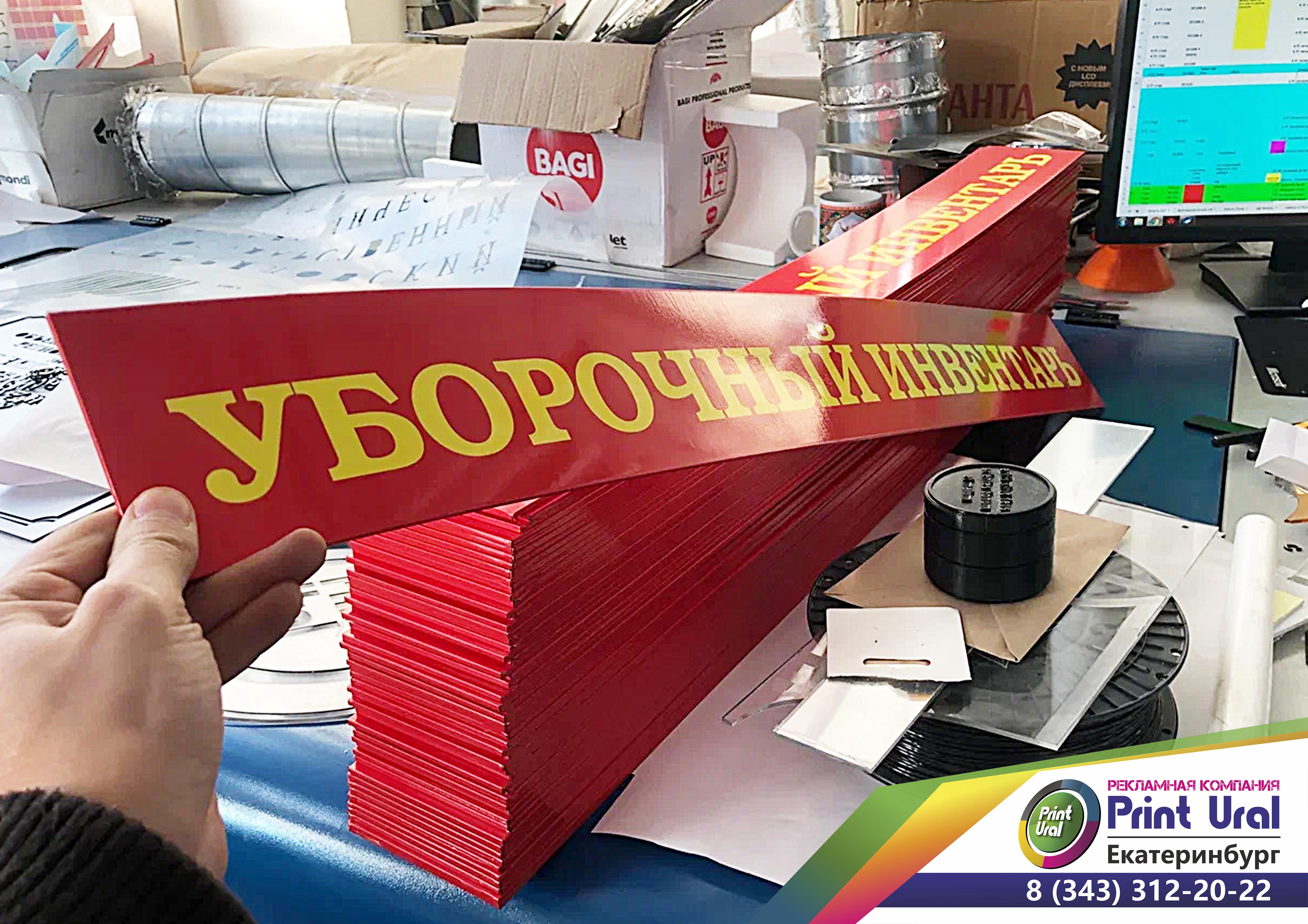 В "Print Ural" можно изготовить для вашего офиса легкие и прочные пластиковые таблички любого дизайна, от строгой и солидной, до яркой и креативной.100% полностью наше производство! Дизайн, печать, ламинация, фрезерная резка пластика пвх любой формы, накатка самоклеющей пленки на пластик с подгибами. Наша компания профессионально занимается изготовлением офисных табличек. Печать баннеров, табличек, постеров, наклеек Таблички изготавливаем следующим образом: