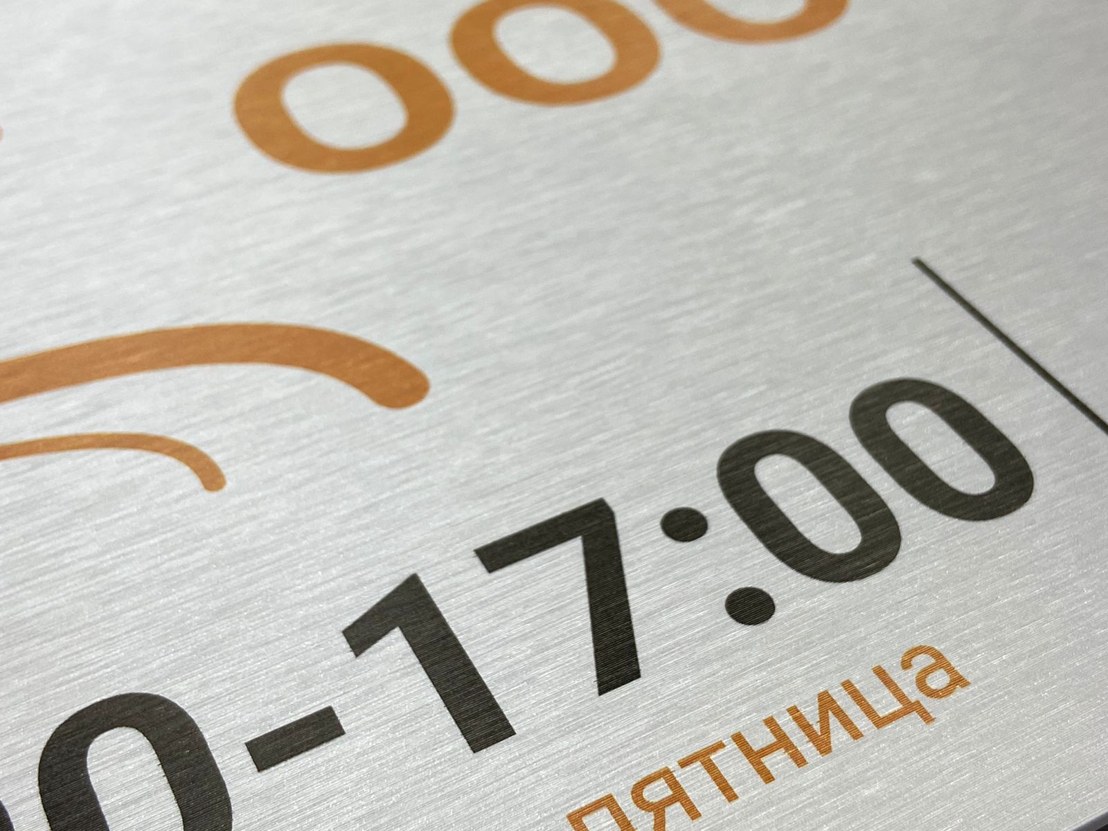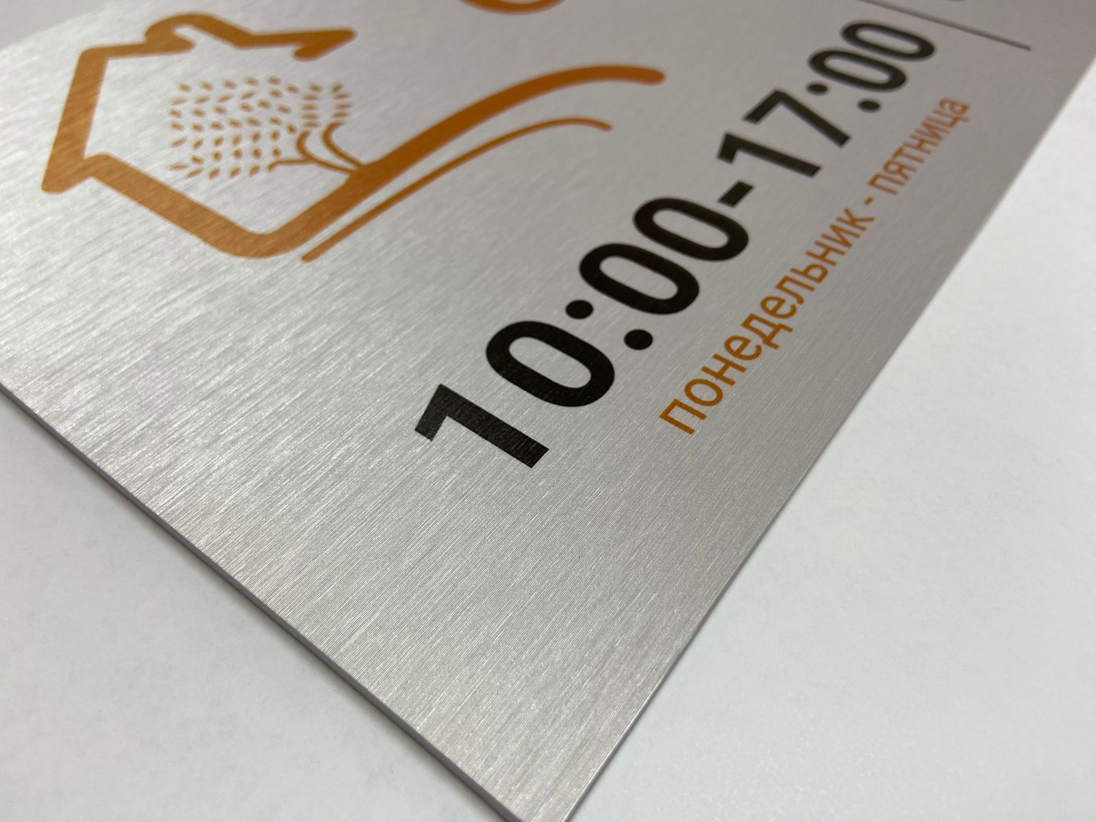 На табличках, как правило, указывают название компании, их логотип и другую важную информацию (адрес, телефон, часы работы). Уважающие себя фирмы активно используют этот инструмент имиджевой рекламы, поэтому печати табличек уделяют большое внимание.